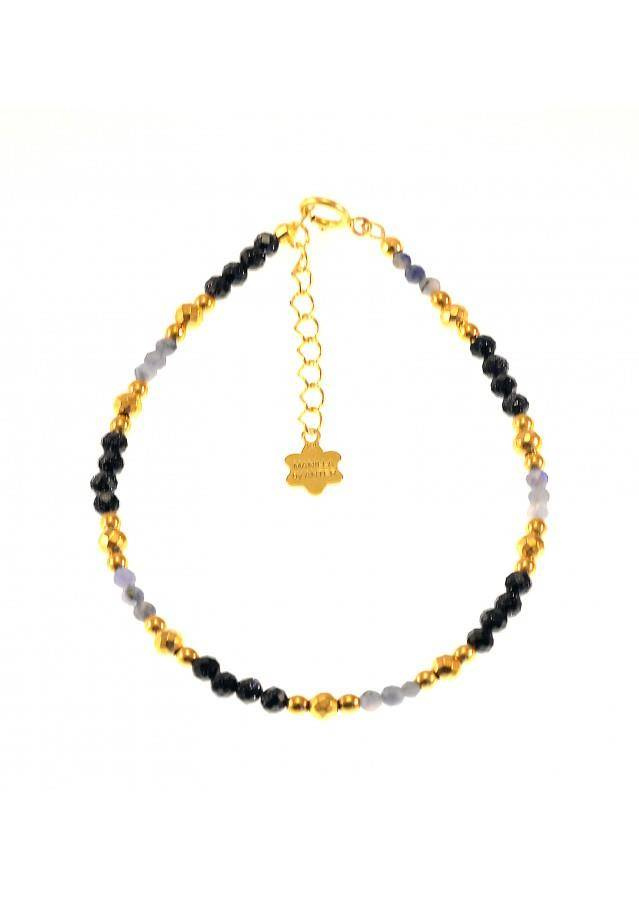 Bransoletka wykonana ze srebra próby 925 , pozłacanego 24 karatowym złotem Kamień: Spinel+ Sodalit + Hematyt Rozmiar kamienia: 2 mm/3mm Długość :17,5 cm +