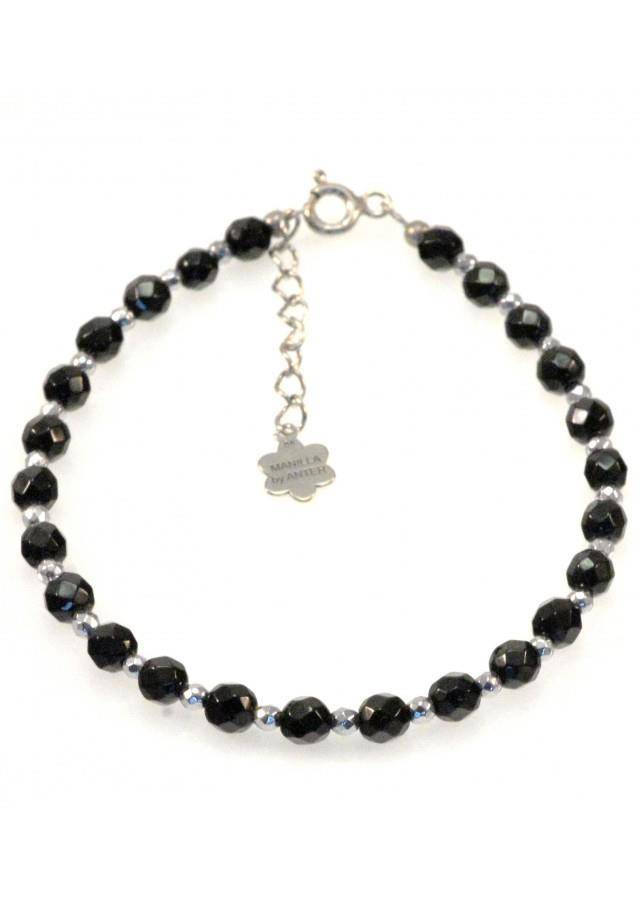 Bransoletka wykonana ze srebra próby 925 , pozłacanego 24 karatowym złotem Kamień: Spinel i Hematyt Rozmiar kamienia: 2mm / 4mm Długość: 17,5 cm + przedłużka do 19,5 cm