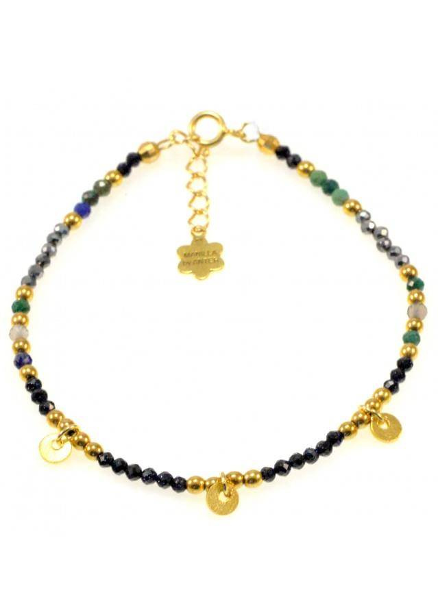 Bransoletka wykonana ze srebra próby 925 , pozłacanego 24 karatowym złotem Kamień: Noc Kairu i Hikari Rozmiar kamienia: 2mm Długość: 17,5 cm + przedłużka do 19,5 cm