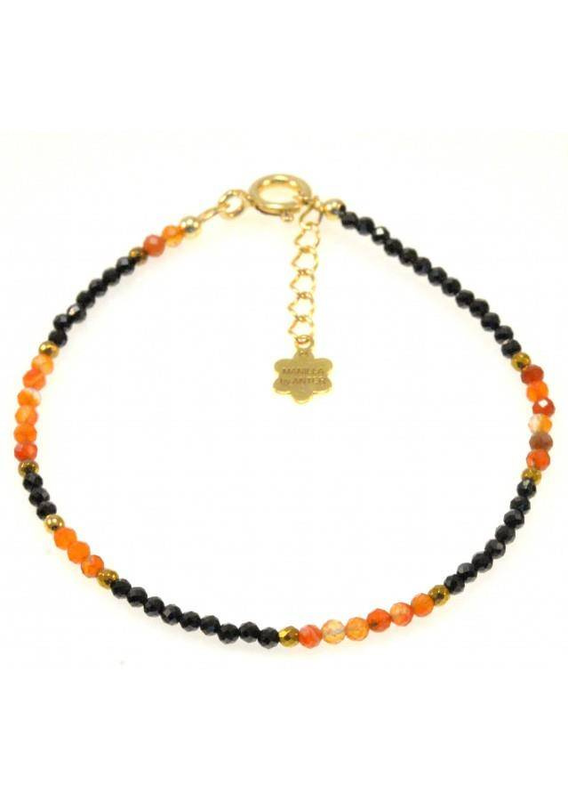 Bransoletka wykonana ze srebra próby 925 , pozłacanego 24 karatowym złotem Kamień: Granat,  Spinel i Hematyt Rozmiar kamienia: 2 mm Długość: 17,5 cm + przedłużka do 19,5 cm