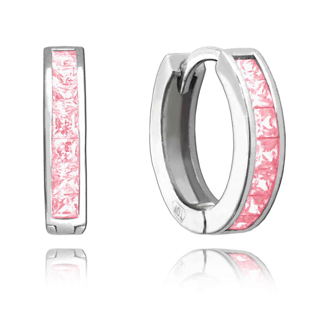 Jasnoróżowe kolczyki są wygodne do noszenia na co dzień dzięki praktycznemu zapięciu i kształtowi. Różowe cyrkonie pięknie się mienią i dodadzą uroku Twojemu strojowi. Powierzchnia srebra jest rodowana, dzięki czemu kolczyki nie stracą swojego blasku i koloru.