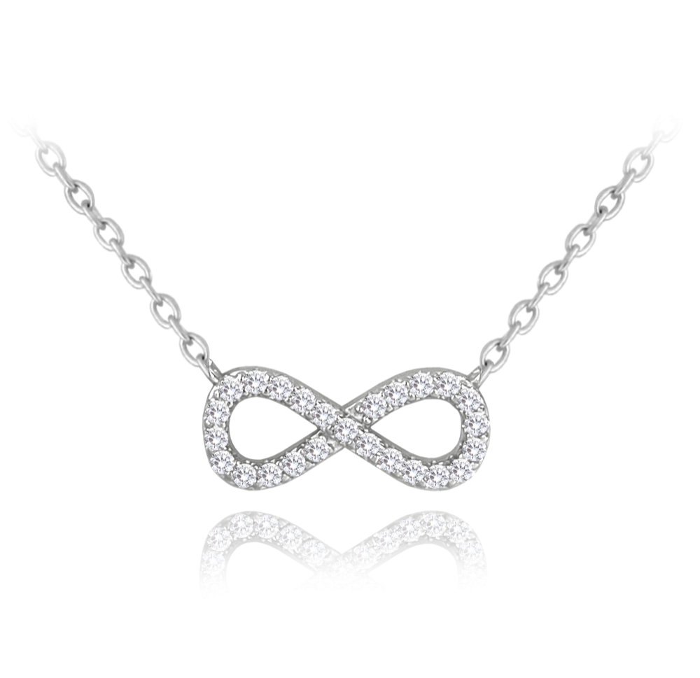 Srebrny naszyjnik MINET z symbolem nieskończoności jest odzwierciedleniem aktualnych trendów. Ciekawie osadzone dżetów sprawiają, że jest to oryginalny dodatek do codziennego noszenia.
