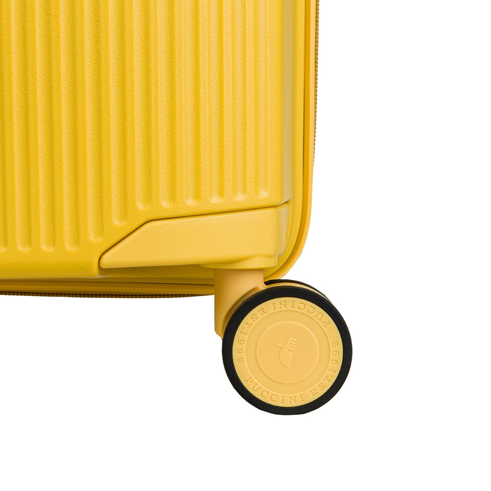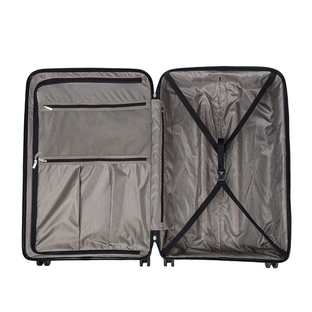 - walizka twarda wykonana z polipropylenu, materiału charakteryzującego się super lekką wagą i niezwykłą wytrzymałością
