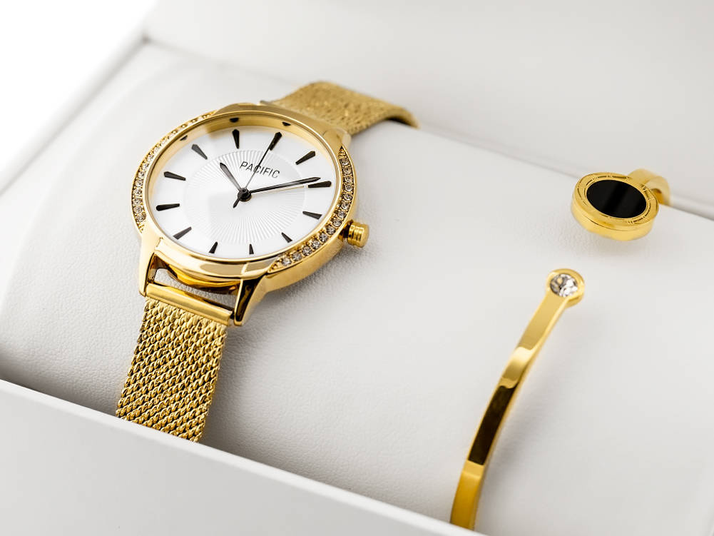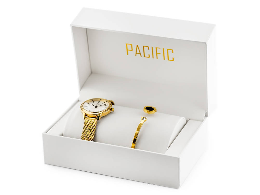 W komplecie eleganckie markowe pudełko w kolorze białym oraz bransoletka na rękę - idealne na prezent.