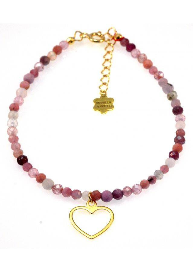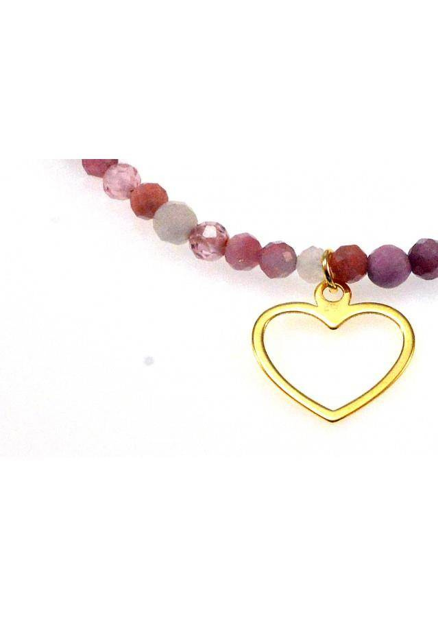 Bransoletka wykonana ze srebra próby 925, pozłacanego 24 karatowym złotem. Kamień: Mix Kwarc różowy Rozmiar kamienia: Długość: 17,5 cm + przedłużka do 19,5 cm Zapięcie: klasyczne (federing) Biżuteria ręcznie wykonana, produkt Polski.
