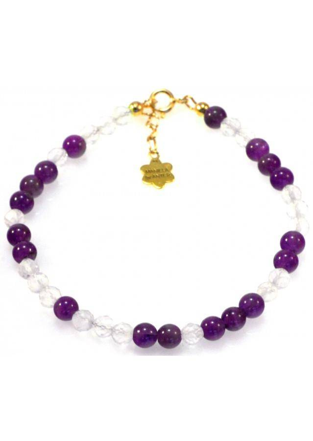 Kamień: Ametyst, Kryształ Górski Rozmiar kamienia: 3mm Długość: 17,5 cm + przedłużka do 19,5 cm Zapięcie: klasyczne (federing) Biżuteria ręcznie wykonana, produkt Polski.