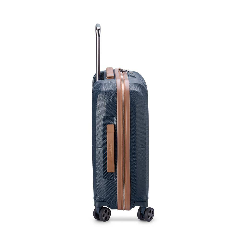 Walizka Delsey St Tropez Slim 55 cm wyróżnia się wyrafinowanym wyglądem, dużą wytrzymałością, przyjemną obsługą i inteligentnym układem wewnętrznym. Łączy w sobie wszystkie atuty pozwalające na pobyt i wyjazd w najlepszych warunkach. Staranna konstrukcja z poliwęglanu zapewnia doskonałą odporność na zużycie. Jej teksturowane wykończenie jak szlachetna tkanina, kontrastujące, płowe wykończenia i detale ze sztucznej skóry przyczyniają się do eleganckiego stylu w najmniejszym szczególe. Jej niewielkie rozmiary sprawiają, że nadaje się na pobyt od 2 do 5 dni, zachowując zgodność w szczególności ze standardami kabin EasyJet i Air France. Najbardziej wymagający podróżnicy docenią obecność rozszerzanego klinu zapinanego na zamek, pozwalającego zyskać 5 litrów dodatkowej przestrzeni !