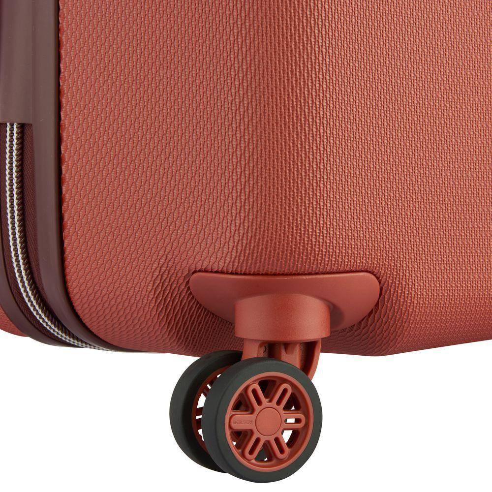 Walizka posiada 4 wytrzymałe i bardzo zwrotne podwójne kółka typu spinner, dzięki czemu można ją wygodnie prowadzić zarówno po płycie lotniska, jak i w zatłoczonej miejskiej przestrzeni.