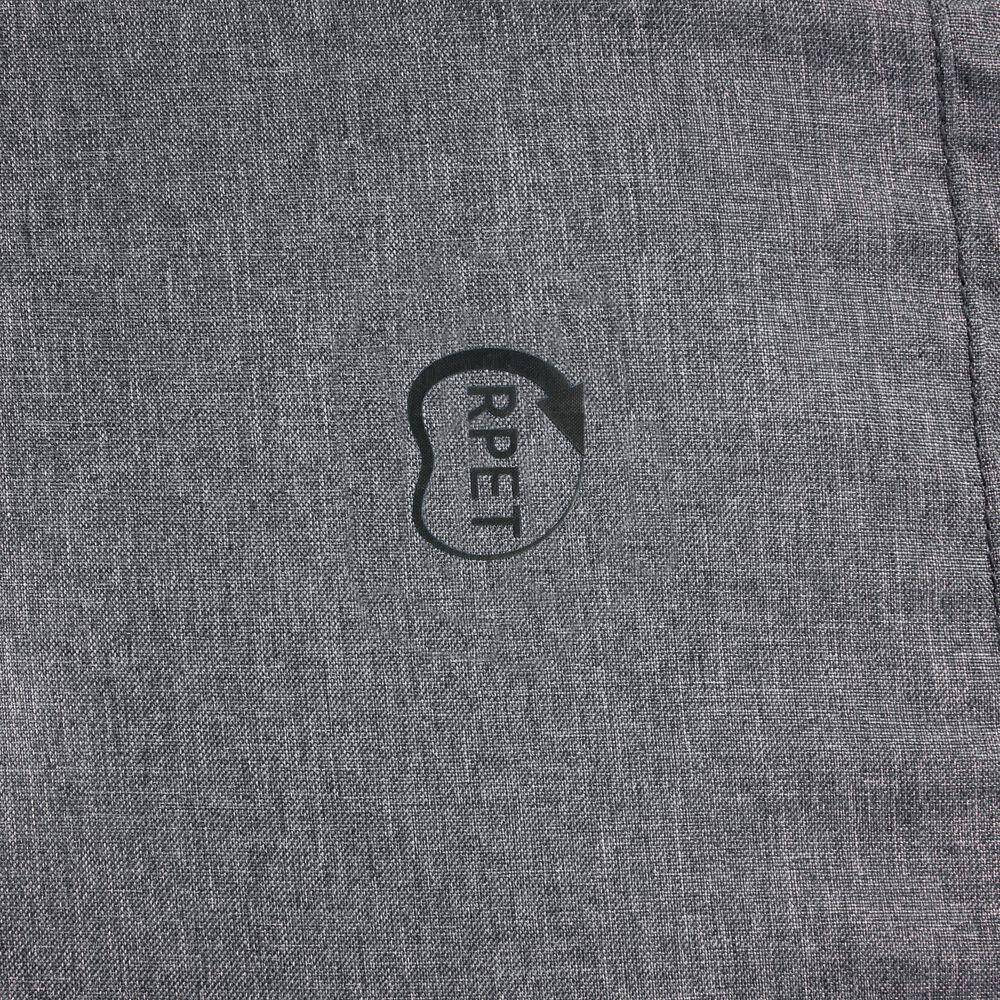 Materiał, z którego wykonana jest ta torba podróżna, to rPET, plastik wyprodukowany ze 107 całkowicie przetworzonych butelek na wodę.