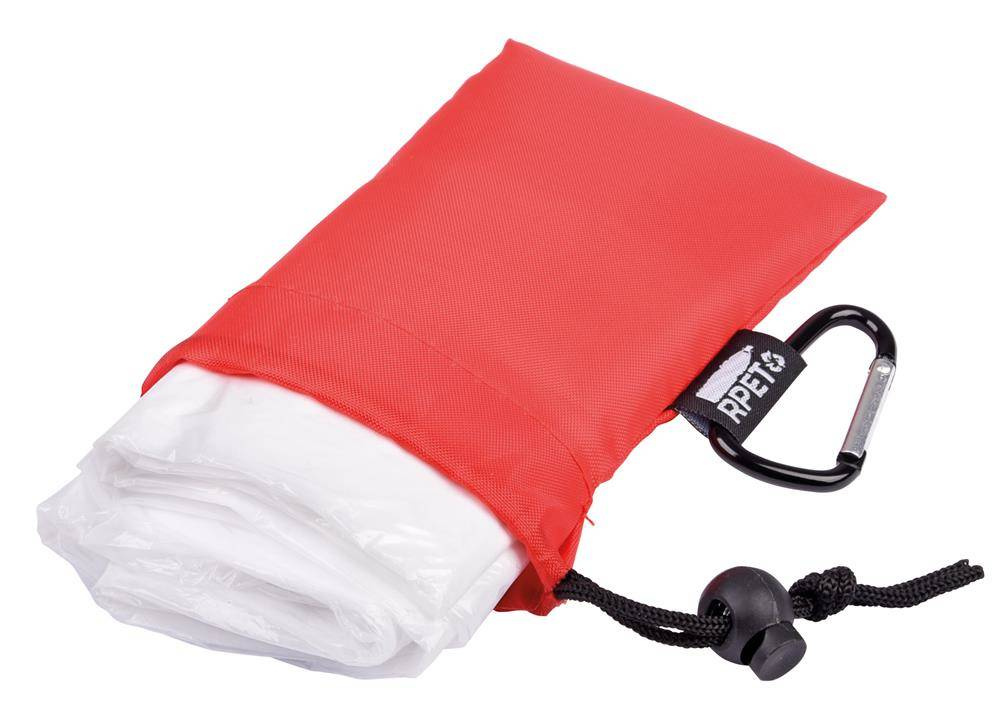 Poncho przeciwdeszczowe ECO SAFE: z kapturem, rozmiar uniwersalny, zapakowane w torbę RPET ze sznurkiem i karabińczykiem