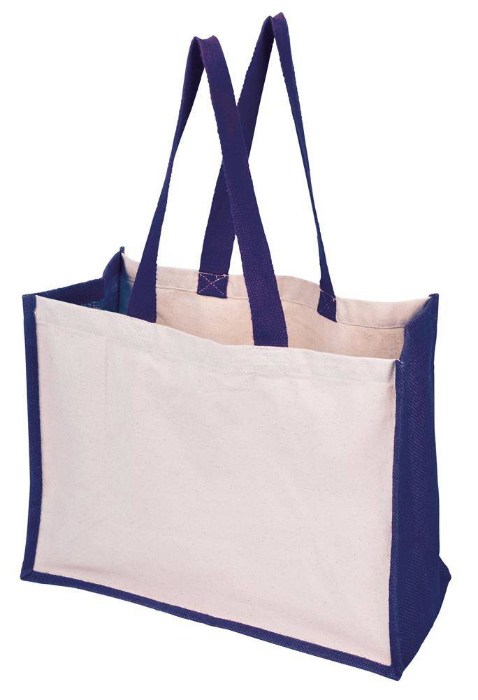 Z długimi bawełnianymi uchwytami i kolorowym wykończeniem.