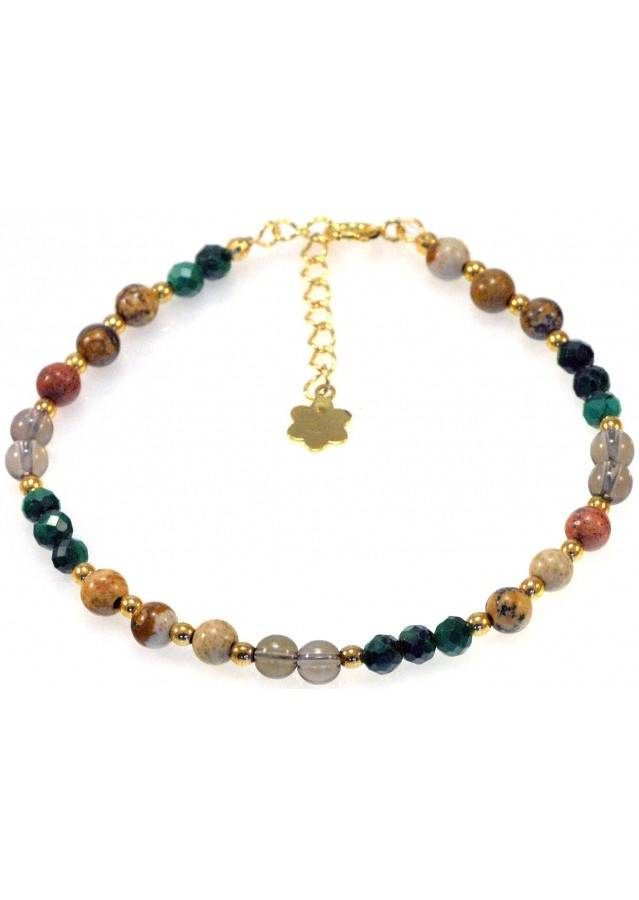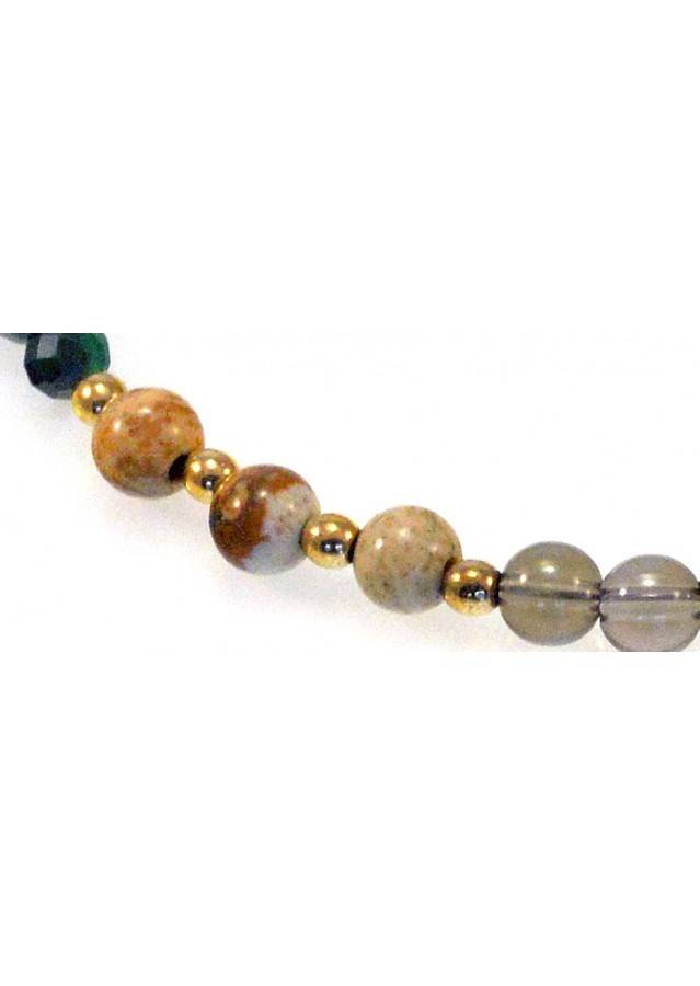 Kamień: Malachit, Kwarc Dymny i Hematyt Rozmiar kamienia: 3mm / 4mm Długość: 17,5 cm + przedłużka do 19,5 cm Zapięcie: klasyczne (federing) Biżuteria ręcznie wykonana, produkt Polski.