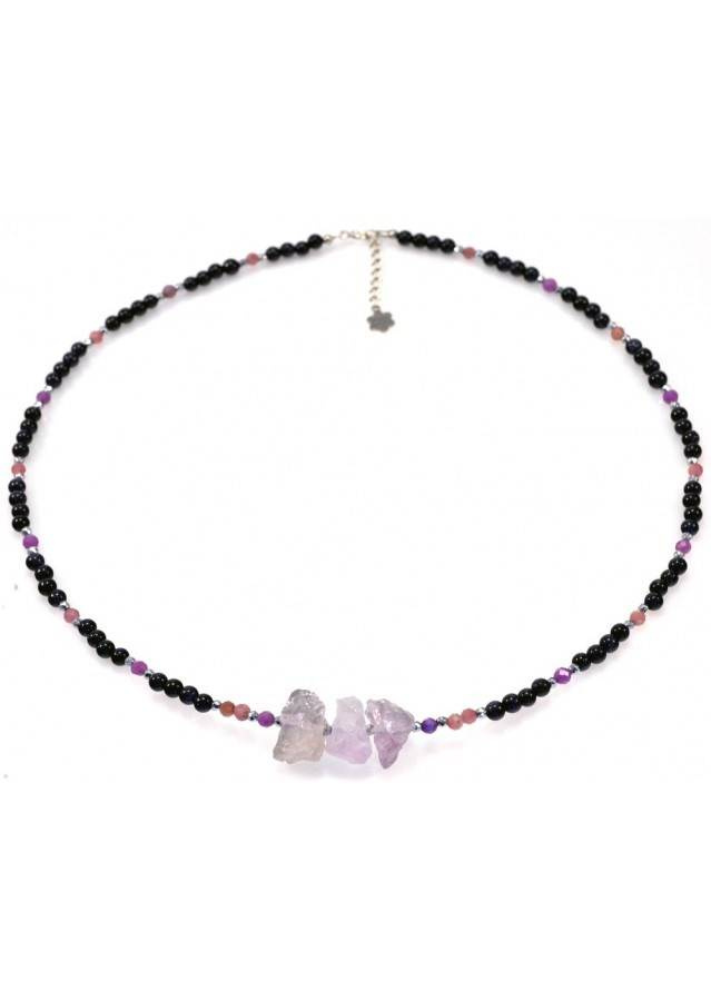 Naszyjnik wykonana ze srebra próby 925, platynowana. Kamień: Noc Kairu, Turmalin i Hematyt Rozmiar kamienia: 4mm Długość: 44 cm Długości do wyboru: 38 cm /42 cm/ 44 cm Zapięcie: klasyczne (federing) Biżuteria ręcznie wykonana, produkt Polski.