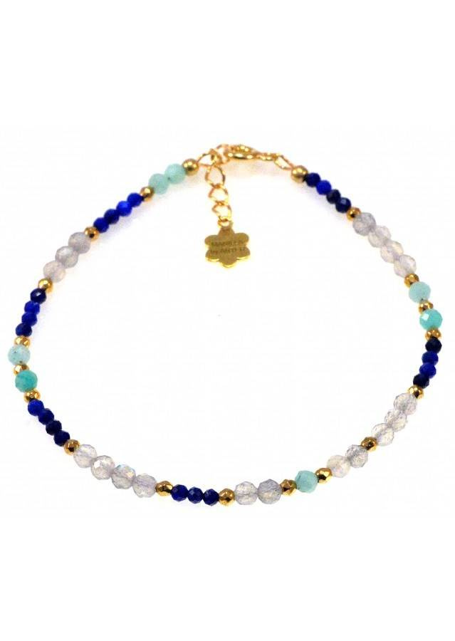 Kamień: Labradoryt, Lapis i Hematyt Rozmiar kamienia: 3mm Długość: 17,5 cm + przedłużka do 19,5 cm Zapięcie: klasyczne (federing) Biżuteria ręcznie wykonana, produkt Polski.