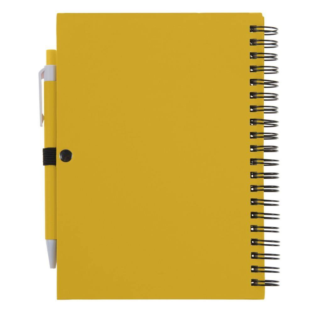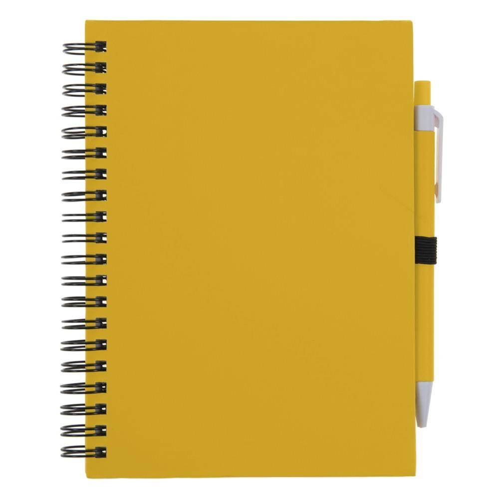 Notatnik (ok. A5, 70 pustych kartek) z okładką z kartonu z recyklingu i dopasowanym kolorystycznie długopisem z trzonem z kartonu z recyklingu, spiralne bindowanie
