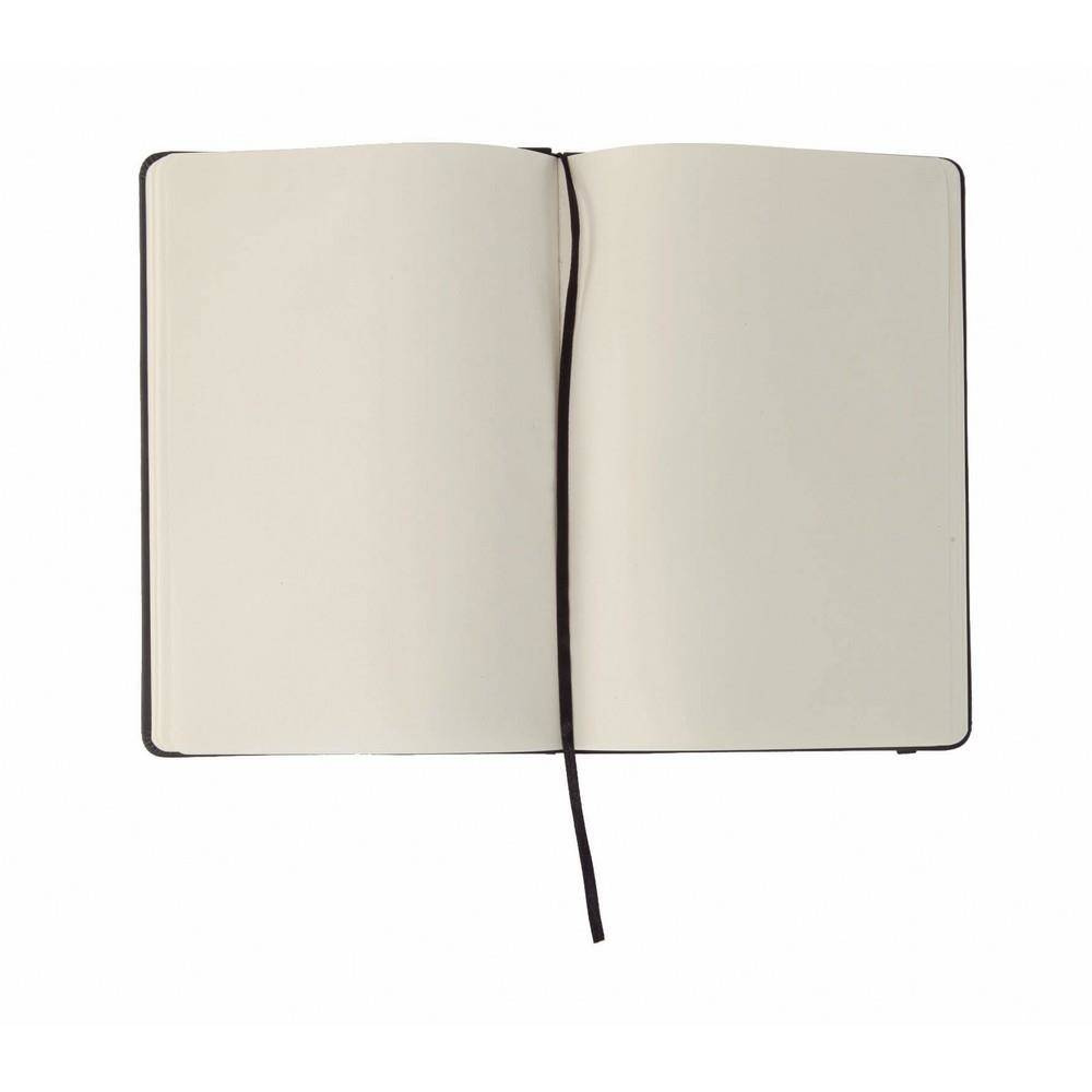 Notatnik A5 (100 pustych kartek), tasiemka zakładkowa i elastyczna opaska do zamykania