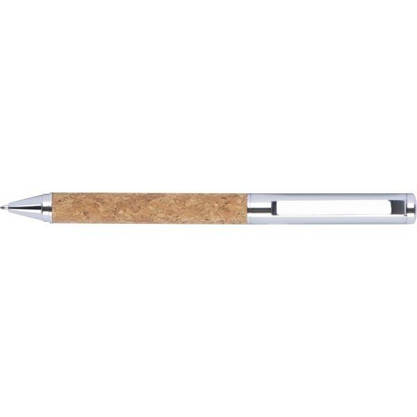 Elegancki długopis wykonany z korka z metalowymi elementami.