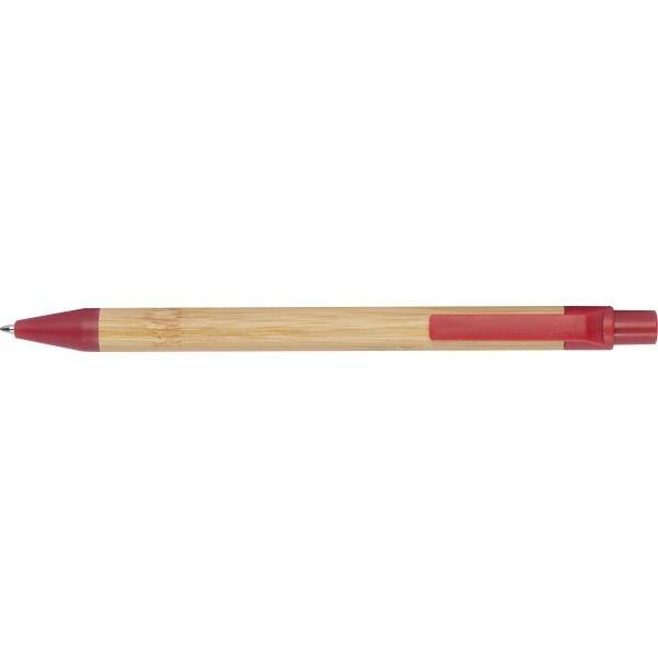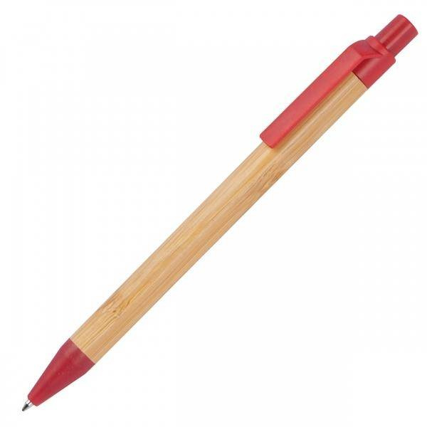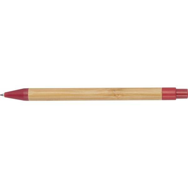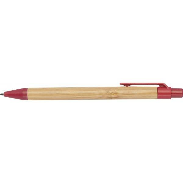 Długopis wykonany z bambusa z kolorowymi elementami wykonanymi z włókna pszenicznego.