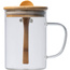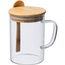 Kubek ze szkła borokrzemowego z zamykaną bambusową pokrywką, łyżeczką i pokrywką. Szklany kubek o pojemności 420 ml.