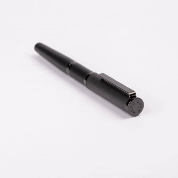 Gra na kontraście między głęboką ciemnoszarą szczotkowaną nasadką, miękkim matowym czarnym korpusem i subtelnymi lśniącymi ciemnobrązowymi akcentami.