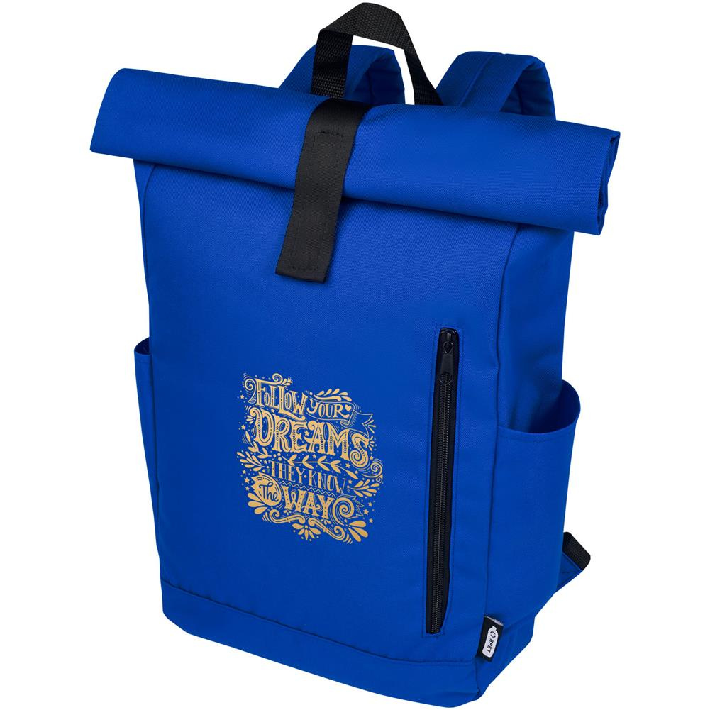 Praktyczny, wytrzymały i hydrofobowy plecak wykonany z poliestru pochodzącego z recyklingu z certyfikatem GRS z dużą wewnętrzną przegrodą z 15,6-calową przegrodą na laptopa, przednią kieszenią zapinaną na zamek błyskawiczny i 2 bocznymi kieszeniami.
