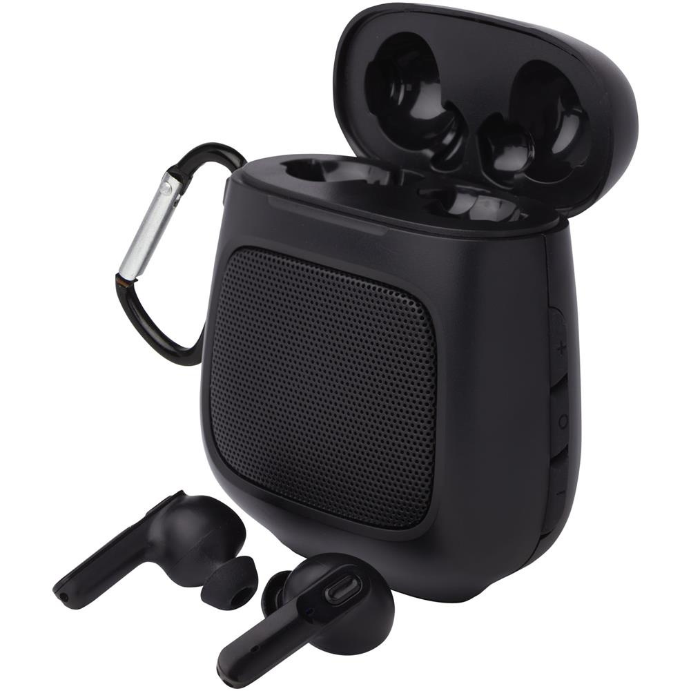 Zestaw Remix łączy w sobie technologię True Wireless w słuchawkach dousznych i głośniku z technologią Bluetooth®. Po wyjęciu słuchawek dousznych z obudowy, włączą się one samoczynnie i automatycznie zsynchronizują ze sobą! Obudowa pełni również funkcję stacji ładującej dla słuchawek oraz głośnika Bluetooth®. Obudowa może naładować słuchawki douszne od 0 do 100% cztery razy po jednym naładowaniu, a słuchawki mogą być używane przez co najmniej 4 godziny przed ponownym naładowaniem. Ergonomiczna konstrukcja słuchawek dousznych sprawia, że utrzymują się one stabilnie w miejscu podczas podróży. Ładowanie słuchawek dousznych od 0 do 100% trwa w przybliżeniu 2 godziny. Zarówno słuchawki douszne, jak i głośnik mają wbudowany mikrofon i elementy sterujące muzyką do odbierania lub wykonywania połączeń telefonicznych. Zasięg protokołu Bluetooth® wynosi do 10 metrów. W zestawie znajdują się średnie i duże końcówki do uszu. Sprzedawane w ozdobnym pudełku upominkowym.