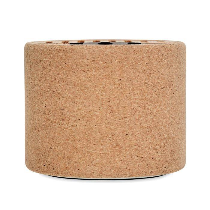 Głośnik bezprzewodowy 5.3 z ABS z korkową obudową, z bambusowym elementem na górze i wskaźnikiem świetlnym LED.