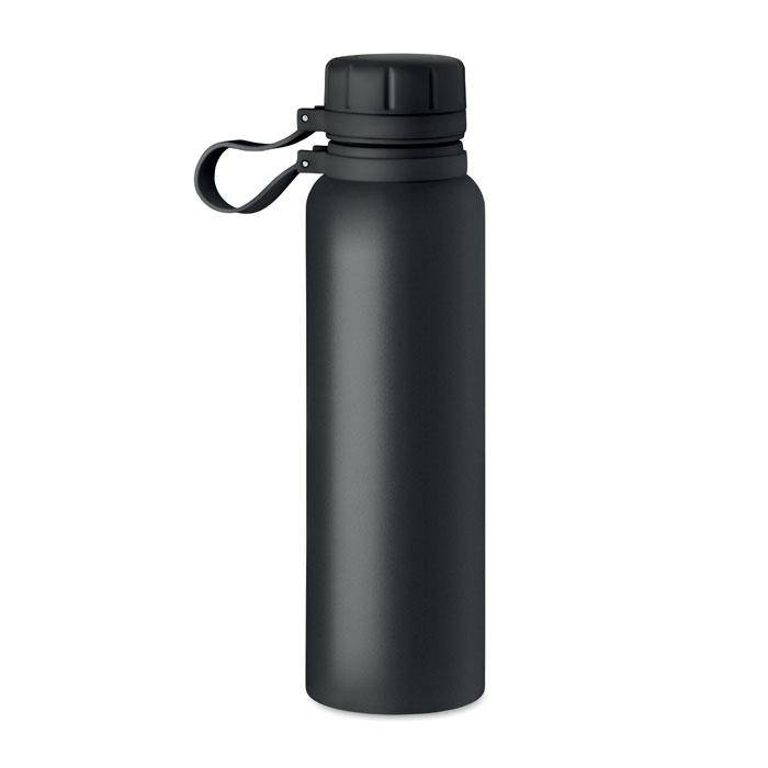 Dwuścienna butelka ze stali nierdzewnej izolowana próżniowo z zakrętką i silikonowym uchwytem.