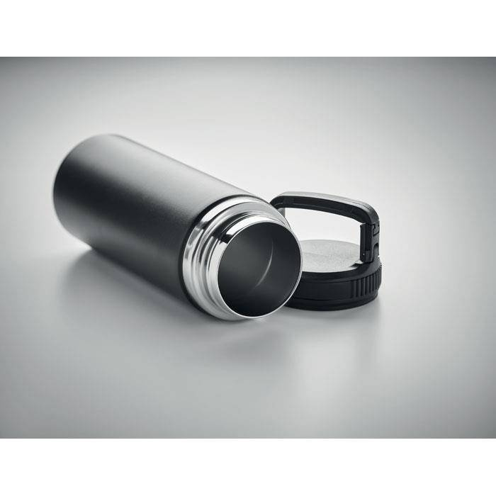 Dwuścienna butelka ze stali nierdzewnej, izolowana próżniowo z uchwytem.