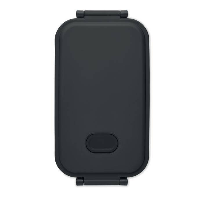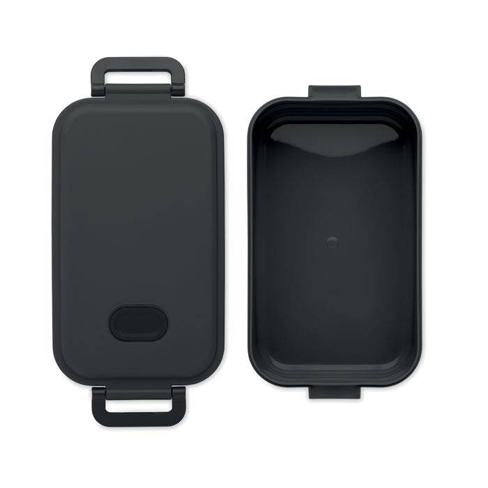Lunch box z recyklingu PP ze szczelną pokrywą, silikonowym zaworem i dwoma bocznymi klamrami.