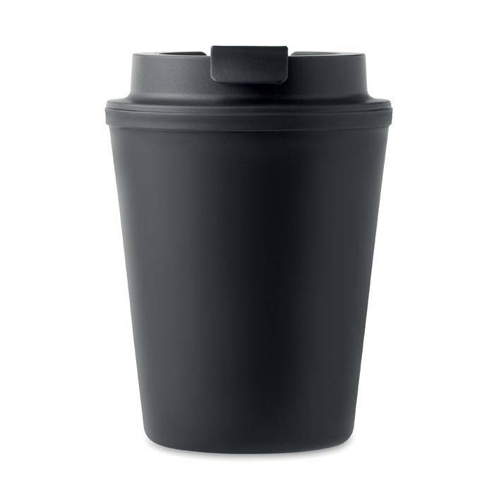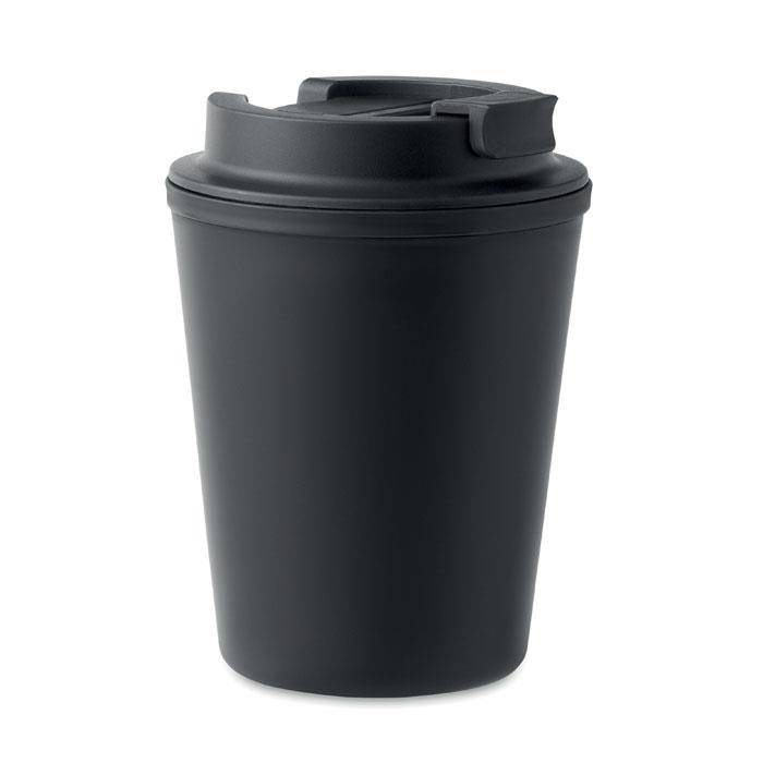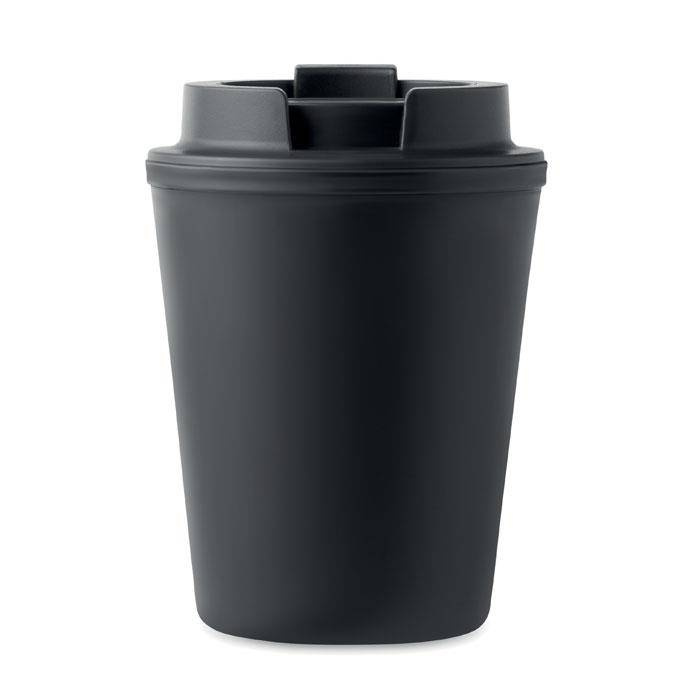 Dwuścienny kubek z pokrywką ze słomką do picia, wykonany z PP pochodzącego z recyklingu.