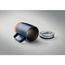 Dwuścienny kubek ze stali nierdzewnej z korkową podstawą i przesuwaną pokrywą z otworem.