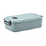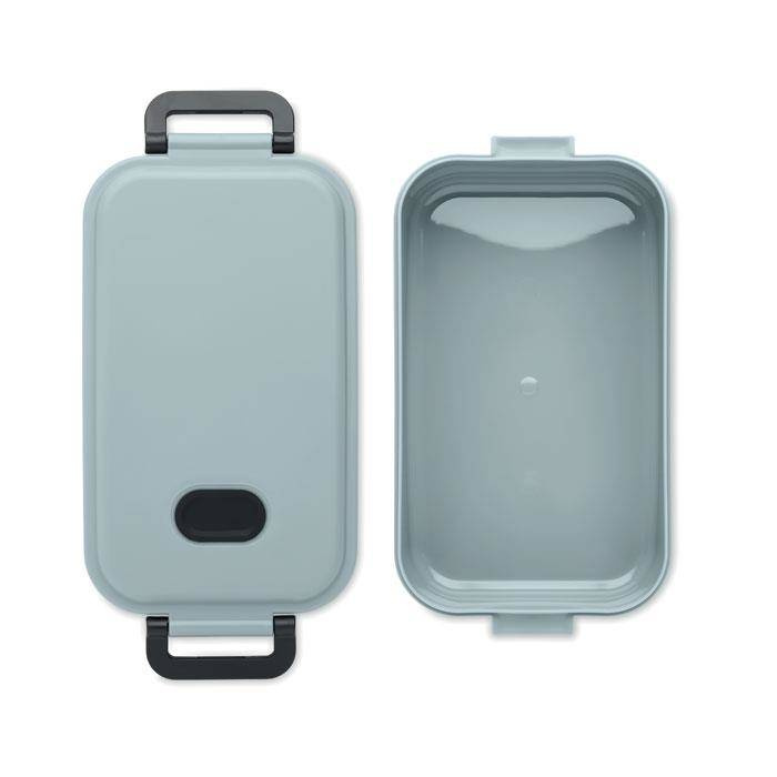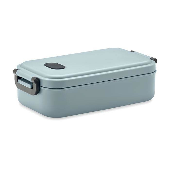 Lunch box z recyklingu PP ze szczelną pokrywą, silikonowym zaworem i dwoma bocznymi klamrami.