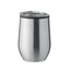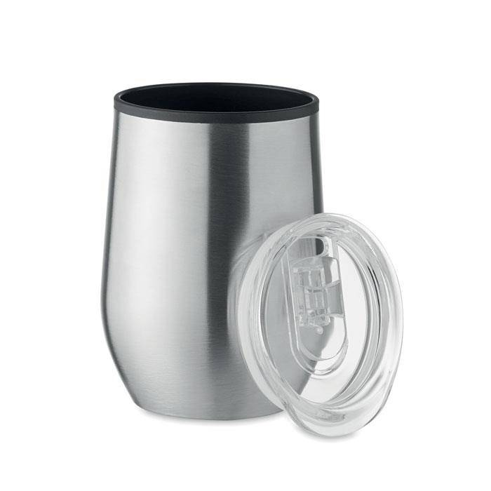 Dwuścienny kubek ze stali nierdzewnej z wewnętrznym PP i przezroczystą pokrywką z PS.