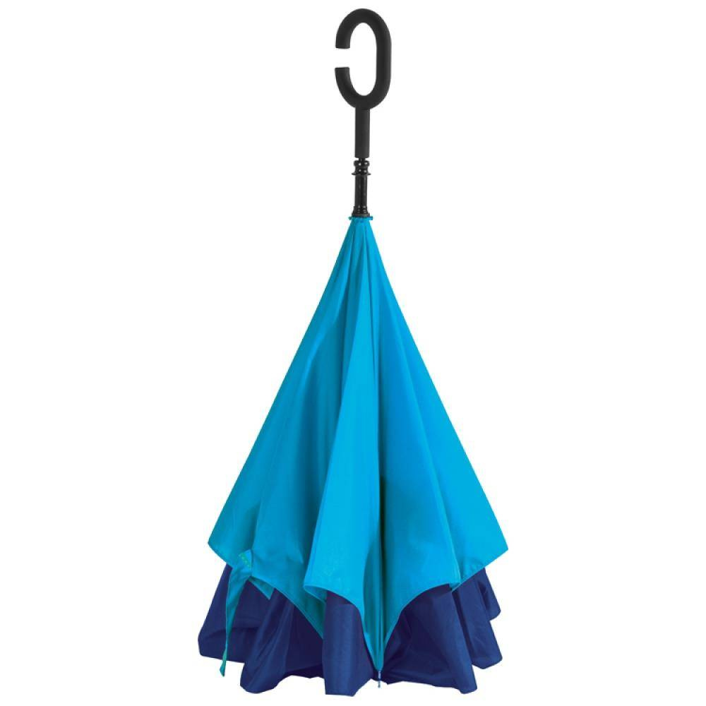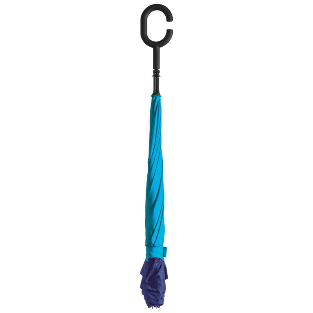 Parasol składany odwrotnie niż tradycyjny, dzięki czemu można np. bez problemu wsiąść do samochodu w trakcie deszczu.