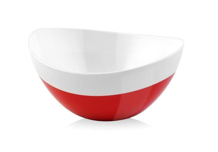 Nowoczesna, biało-czerwona, owalna miska z serii Livio polsko-włoskiej marki Vialli Design, została wykonana z wysokiej jakości akrylu. Akryl jako tworzywu, nie tylko pięknie prezentuje się imitując swoim wyglądem szkło, ale również wykazuje wyższą odporność na stłuczenia i porysowania. Oryginalny i przyciągający uwagę design miski sprawia, że naczynie pełni nie tylko funkcję praktyczną ale również dekoracyjną na stole. Biały kolor wewnątrz i na zewnątrz miski i soczysty, intensywny kolor z zewnątrz doskonale ze sobą kontrastuje. W naczyniu można serwować sałatki, owoce, drobne przekąski jak np. ciasteczka, cukierki itp.