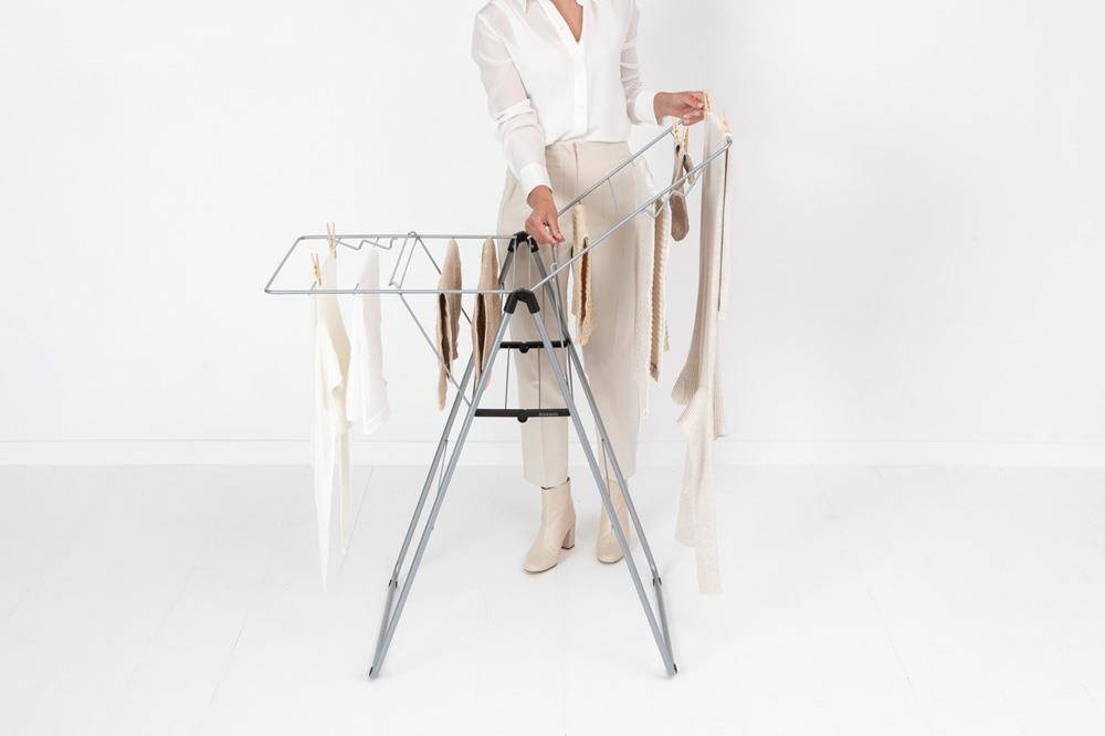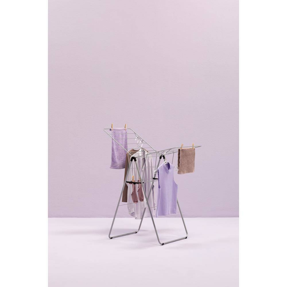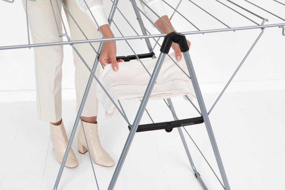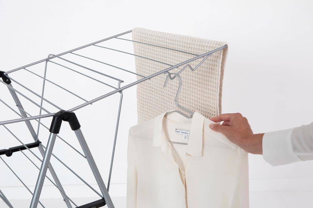 <p><strong>Suszarka na pranie HangOn</strong> to <strong>solidna i funkcjonalna suszarka</strong> przeznaczona do rozwieszenia prania zarówno w domu, na balkonie, a nawet w ogrodzie. <br />Wykonana została z <strong>najwyższej jakości lakierowanej stali nierdzewnej</strong> odpornej na korozję i uszkodzenia, co gwarantuje długoletnie użytkowanie. <br />Suszarka mieści <strong>15m prania.</strong> <strong>Wyposażona w dodatkowe uchwyty do wieszaków na ubrania, doskonałe do suszenia bluzek i koszul.</strong> Produkt posiada również <strong>regulowane skrzydła</strong> na których możemy rozwiesić delikatne ubrania lub bieliznę. <strong>Dolna półka</strong> doskonale sprawdzi się do ubrań, które wymagają suszenia na płasko. <br />Nie musisz martwić się o zarysowaną podłogę,<strong> suszarka została wyposażona w nakładki ochronne</strong>, dzięki którym <strong>nie zrysuje powierzchni podłóg.</strong> Kolejną zaletą jest <strong>blokada transportowa</strong> dzięki, której z łatwością można przenieść suszarkę nawet przy maksymalnym obciążeniu. <br />Doskonały produkt dla każdego domu w którym ceni się <strong>innowacyjne rozwiązania.</strong></p>