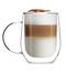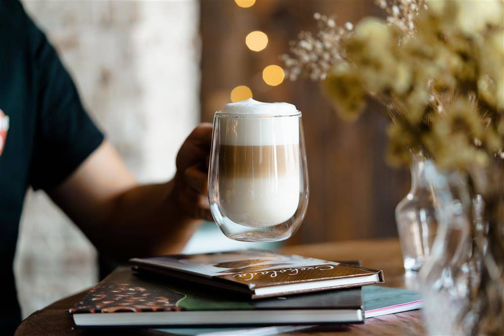 Szklanki mają atrakcyjny, nieco zaokrąglony kształt i ucho zapewniające wygodę użytkowania i ułatwia utrzymanie naczynia w rękach, gdy pijesz ulubioną kawę. Mimo obecności gorącego napoju szklanka się nie nagrzewa. Tę zaletę zawdzięcza podwójnym ściankom, które zapobiegają wystudzeniu. Dzięki temu napój w środku jest ciepły przez długi czas, a Ty możesz komfortowo trzymać szklankę.