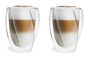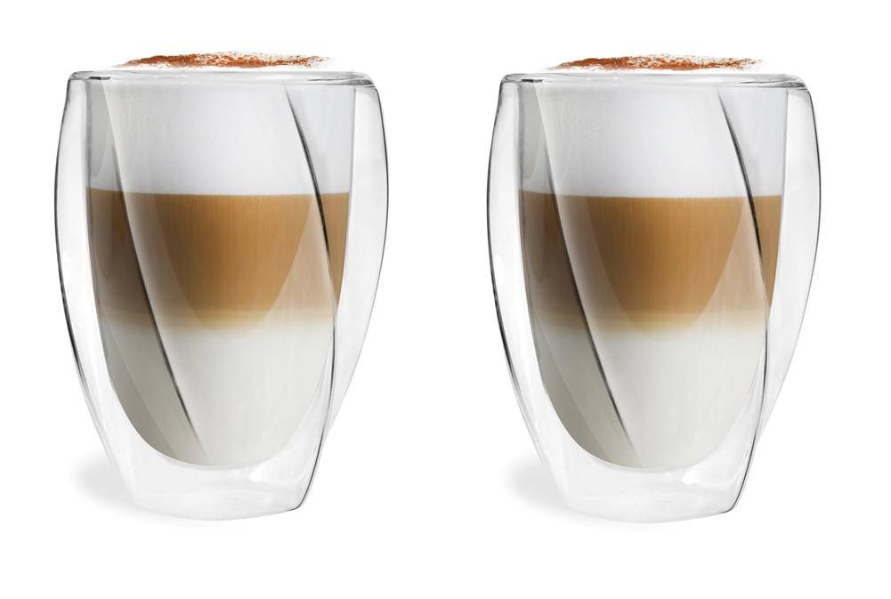 NOWOŚĆ OD VIALLI DESIGN Zestaw dwóch szklanek do kawy lub drinków 300 ml z serii CRISTALLO. Niespotykany, nowoczesny kształt wzmacnia efekt wizualny. Produkt został wykonany ręcznie z najwyższej jakości szkła borokrzemowego. Naczynie, dzięki podwójnym ściankom nie tylko utrzymuje odpowiednią temperaturę napoju na dłużej, ale chroni także przed poparzeniem. Możemy trzymać szklankę bez obaw w dłoni nawet, gdy pijemy ciepłą kawę. Idealnie sprawdzi się również przy serwowaniu zimnych napojów i drinków.