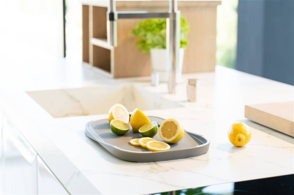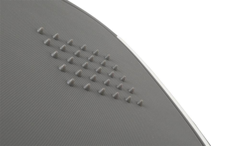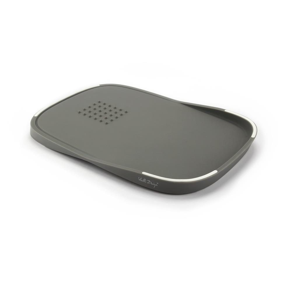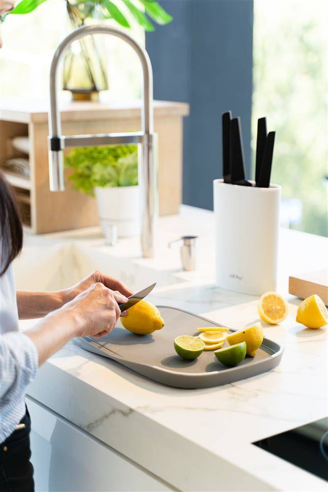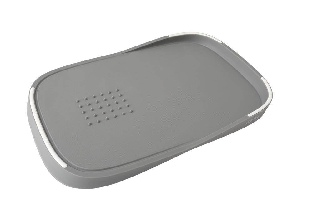 Niezwykle użyteczną funkcją deski jest także to, że jedna ze stron jest ustawiona pod skosem. Dzięki temu, że powierzchnia jest nachylona pod niewielkim kątem, soki oraz okruszki zbierają się na dole deski, a ty możesz wygodnie kroić dalej. Na koniec możesz przechylić róg i umyć wszystko pod bieżącą wodą.Ponadto w jednej części deski znajdują się specjalne wypustki, które służą do utrzymania produktów o śliskiej strukturze. Już nigdy więcej mięso czy jajko na twardo nie będzie suwać się po powierzchni blatu, a ty uchronisz swoje palce przed skaleczeniem.