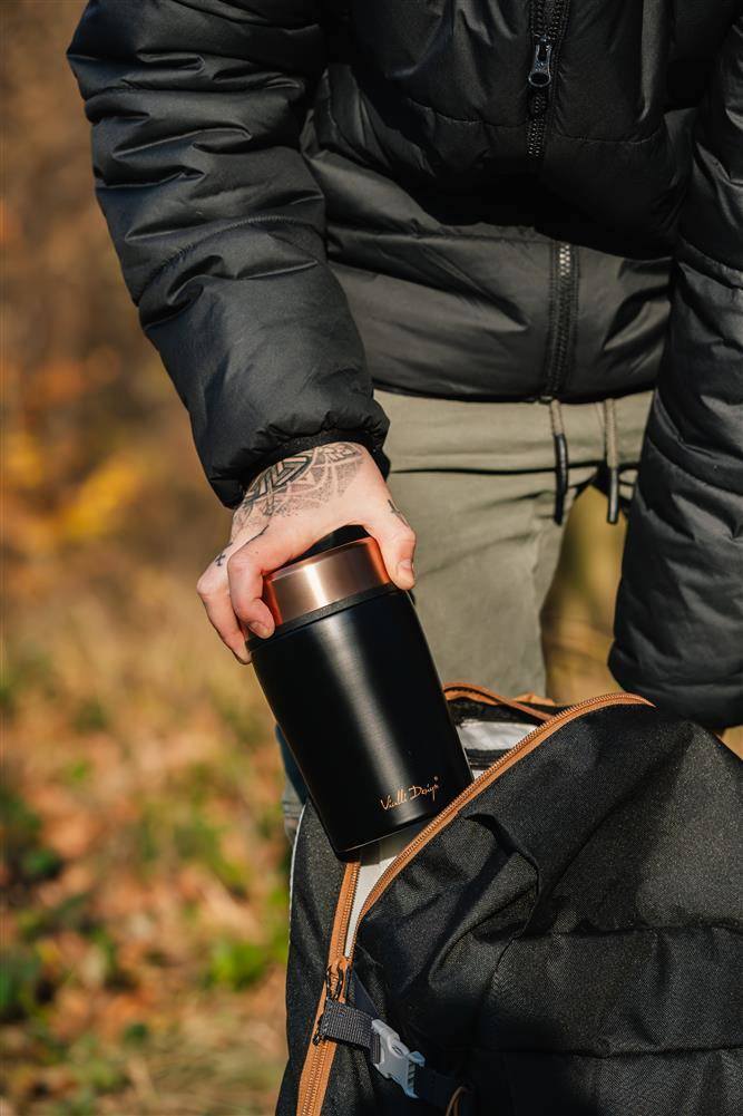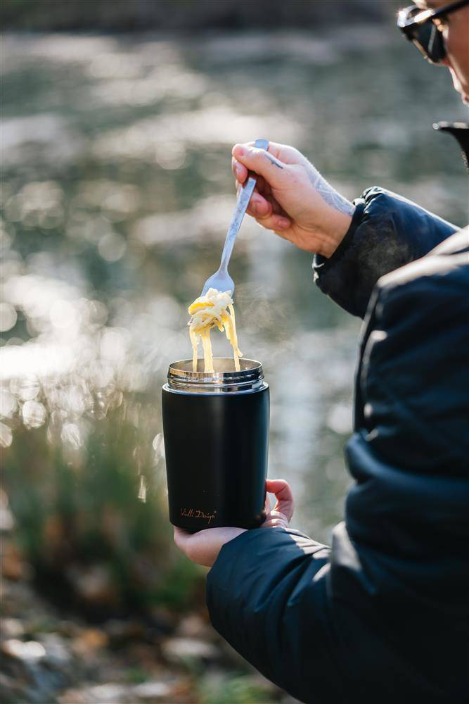 Termos obiadowy Vialli Design z serii Fuori ma pojemność 500 ml i posiada stalową izolację próżniową – gwarantuje to zachowanie odpowiedniej temperatury przez długi czas. W przypadku gorących produktów będzie to 12 godzin, a w przypadku schłodzonych – aż 16 godzin. Bardzo dużym atutem jest to, że zewnętrzna ścianka nie nagrzewa się ani nie skrapla. Dobrze przemyślany kształt produktu, który idealnie dopasuje się do każdej dłoni, to kolejny aspekt świadczący o niezwykłej funkcjonalności. Kompaktowy rozmiar i niewielka waga sprawiają, że transport termosu nie będzie żadnym problemem – możemy z łatwością zabrać go na przykład do pracy.