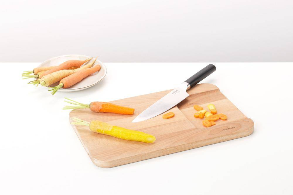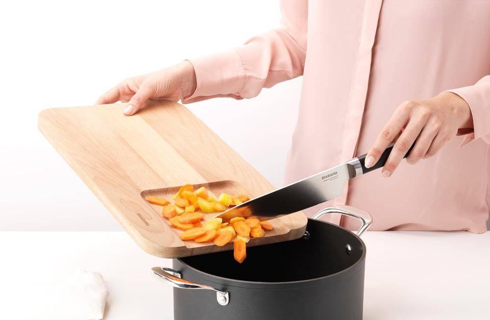 Kuty nóż Szefa Kuchni z serii Profile. Rekomendowany szczególnie do krojenia mięs, warzyw i owoców, jak i siekania. Niezatąpiony, z szerokim ostrzem wspomagający pracę w kuchni. Całkowita długość 33,7 cm.