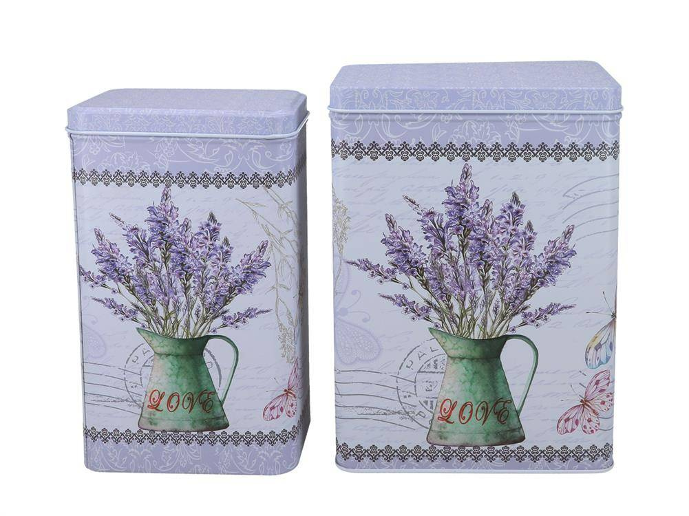 Komplet dwóch puszek z pięknym lawendowym wzorem - powiewlata w każdej kuchni.