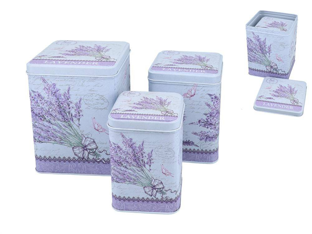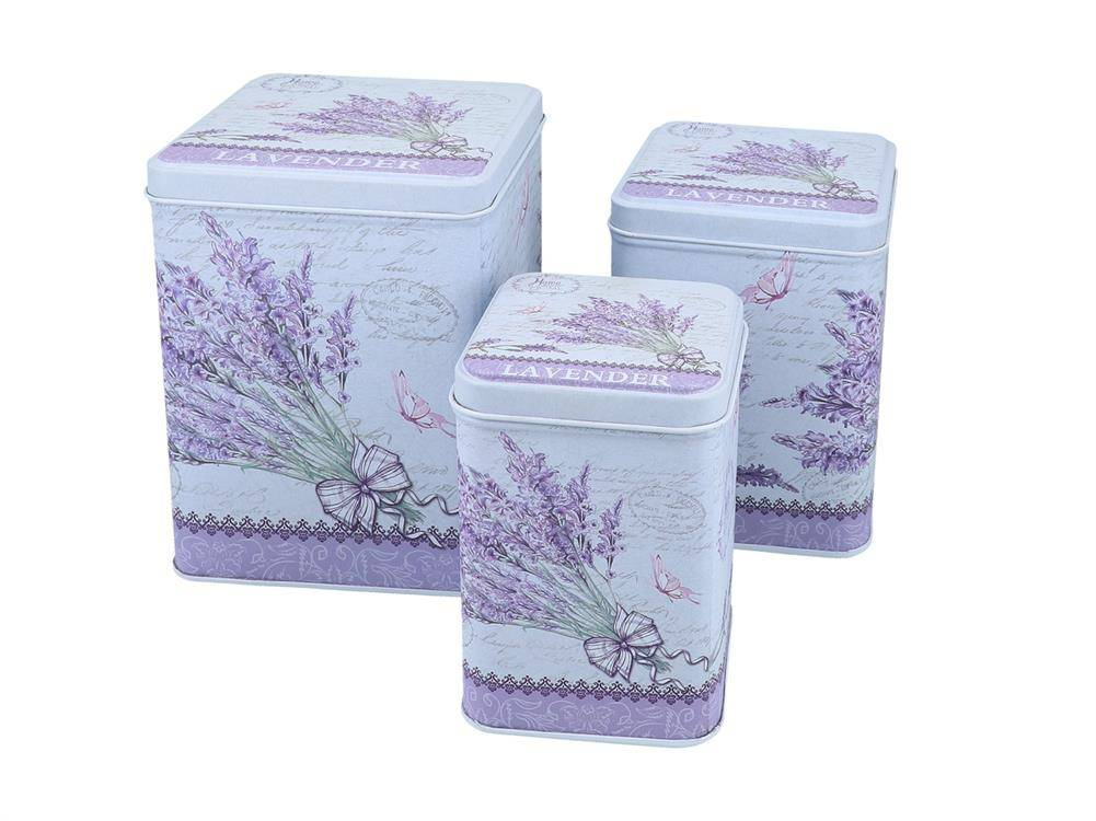 Komplet trzech puszek z pięknym lawendowym wzorem - powiewlata w każdej kuchni.