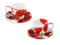 Zestaw dwóch filiżanek ze spodkami ozdobionych makami polnymi ale każdy na innym tle. Filiżanki zostały zapakowane w wysokiej jakości pudełko - kuferek, co dodatkowo zwiększa prestiż produktu.