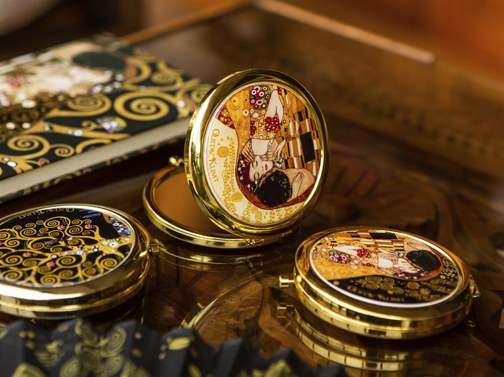 Urocze, małe lustereczko z motywem twórczości Gustava Klimta. Doskonałe do każdej kobiecej torebki. Zajmuje mało miejsca a jego piękne zdobienia dodają uroku.