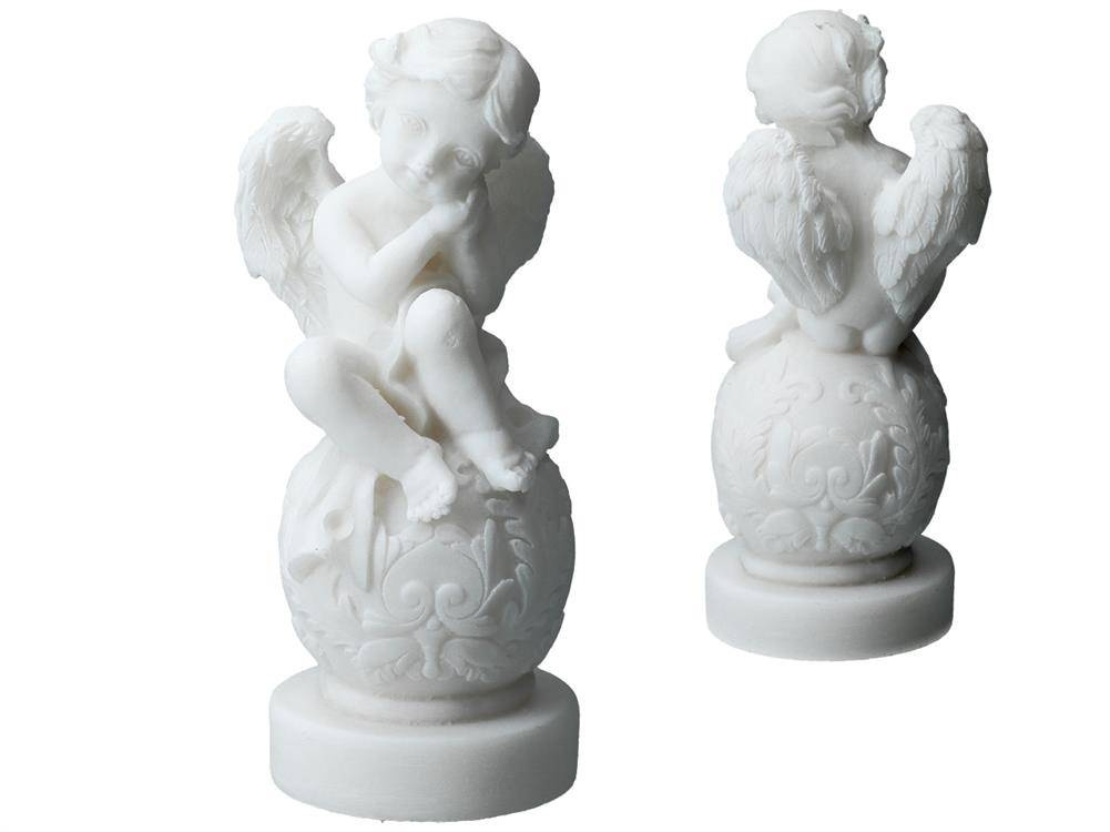 Alabastrowa figurka przedstawiająca siedzącego na kuli aniołka. Już od czasów starożytnych alabaster był wysoko cenionym kamieniem ozdobnym i dekoracyjnym. Niezliczona ilość wzorów stanowi inspirację do tworzenia własnych niepowtarzalnych