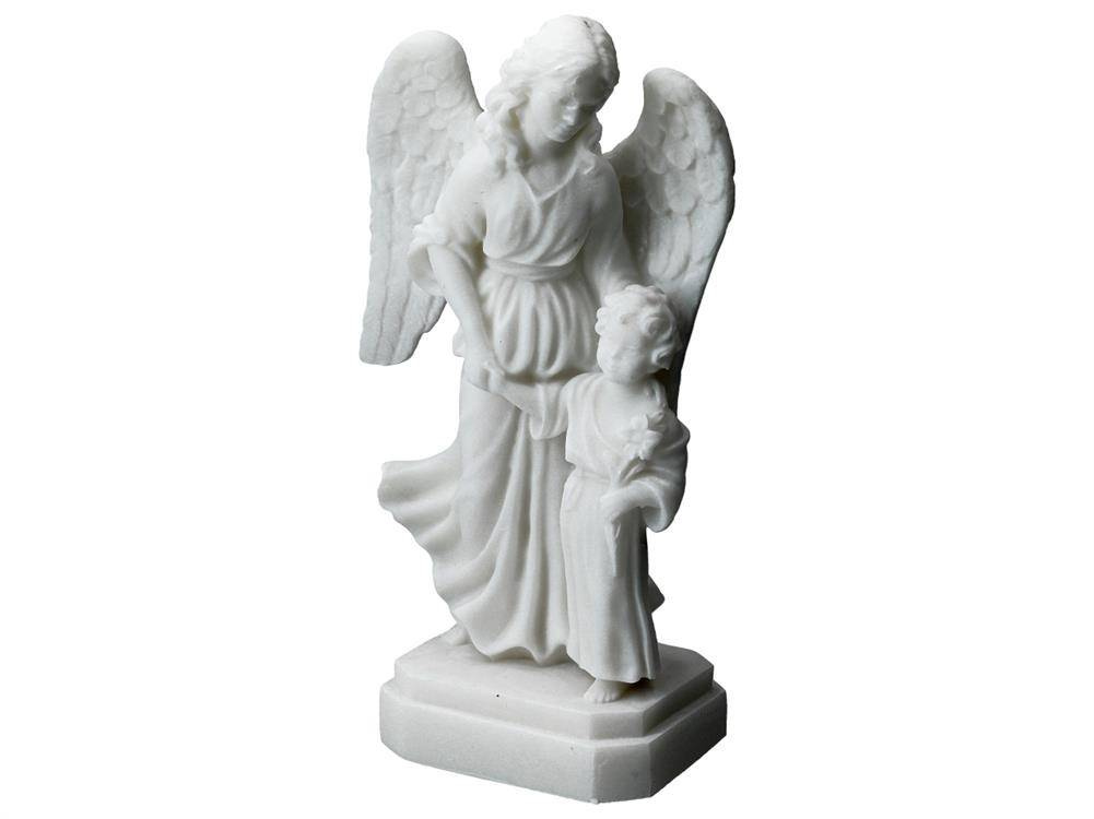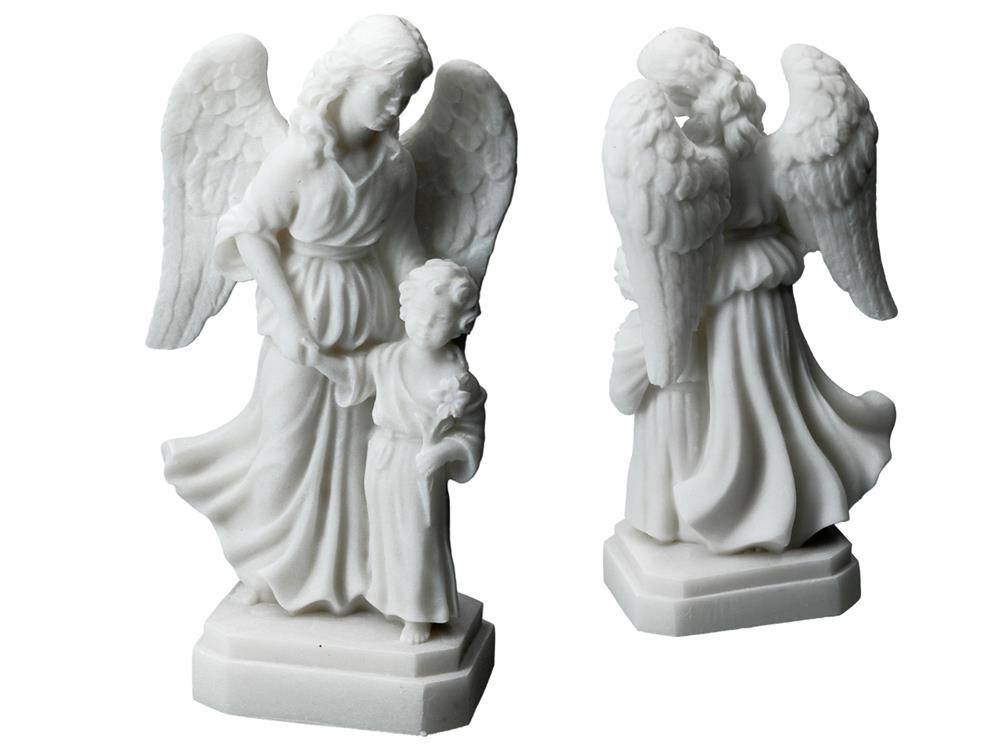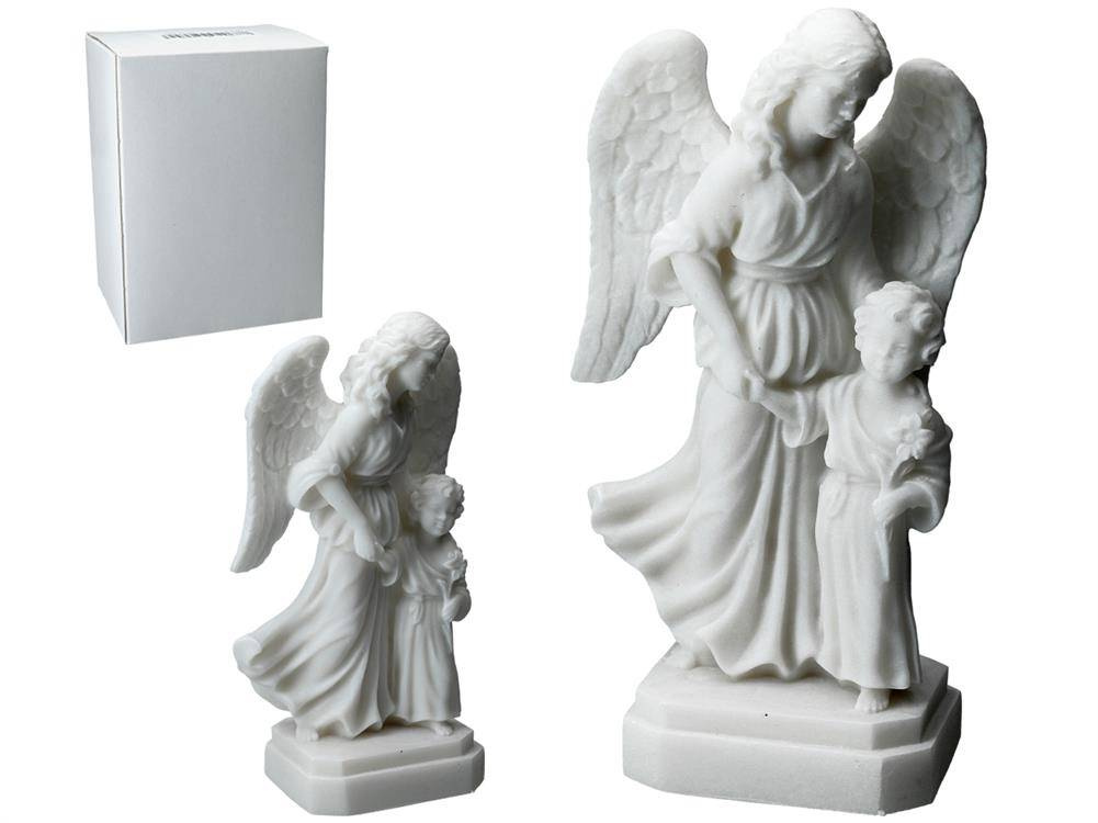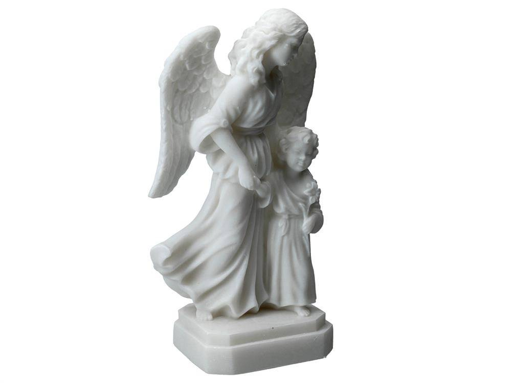 Alabastrowa figurka przedstawiająca Anioła Stróża z dzieckiem. Już od czasów starożytnych alabaster był wysoko cenionym kamieniem ozdobnym i dekoracyjnym. Niezliczona ilość wzorów stanowi inspirację do tworzenia własnych niepowtarzalnych zbiorów