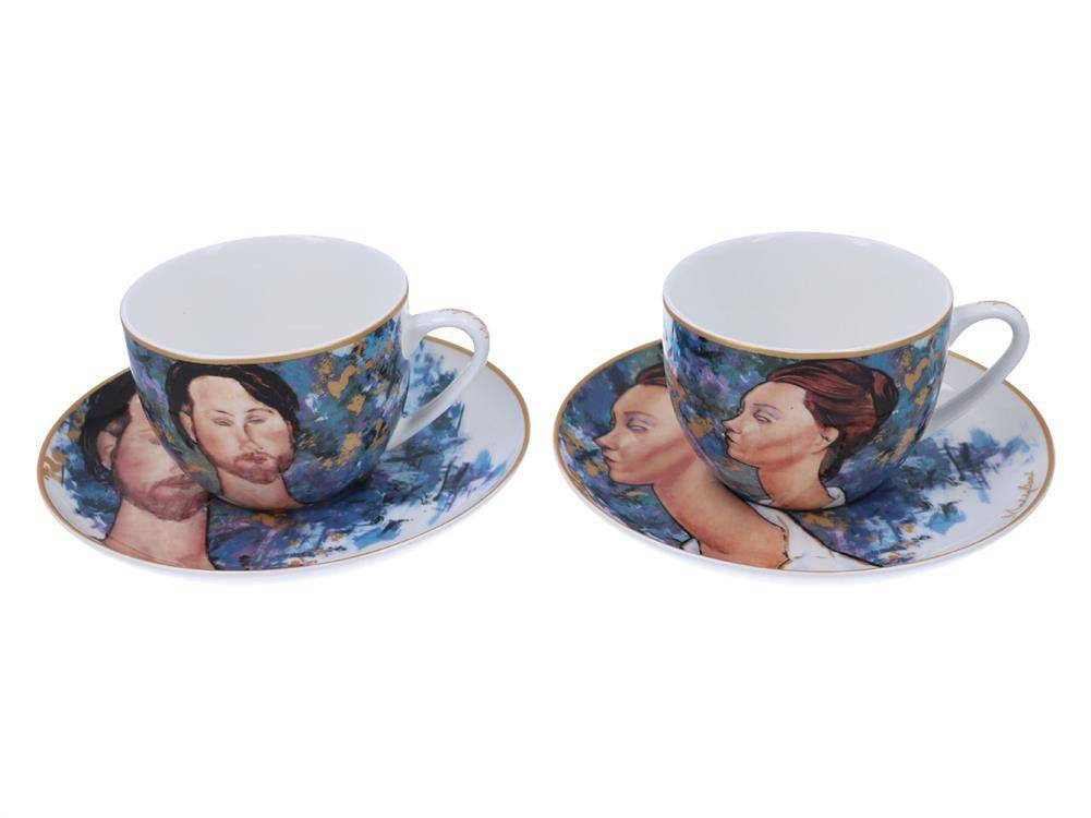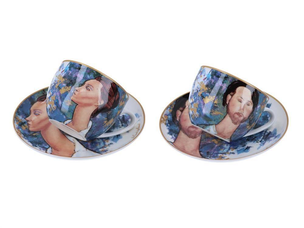 Oryginalny zestaw dwóch filiżanek ze spodkami, z motywem twórczości Amedea Modiglianiego. Zapakowane w piękne, ozdobne opakowanie - świetnie nadaje się na wyjątkowy prezent.