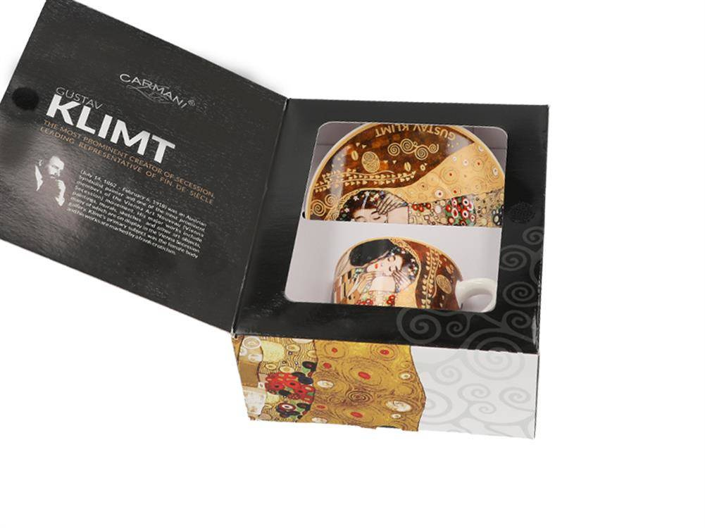 Oryginalny zestaw filiżanki ze spodeczkiem dla fanów prawdziwego espresso oraz twórczości Gustava Klimta.